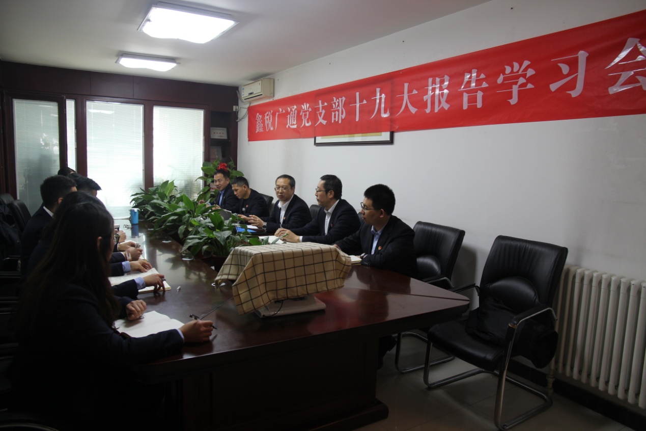 11月16日上午,在鑫稅廣通稅務(wù)師事務(wù)所有限公司大會(huì)議室,公司黨支部組織全體黨員和入黨積極分子學(xué)習(xí)十九大報(bào)告,公司全體黨員和3名入黨積極分子共12人參加了學(xué)習(xí)。并向大家發(fā)放了《黨的十九大報(bào)告學(xué)習(xí)輔導(dǎo)百問》、中國共產(chǎn)黨章程等學(xué)習(xí)資料。