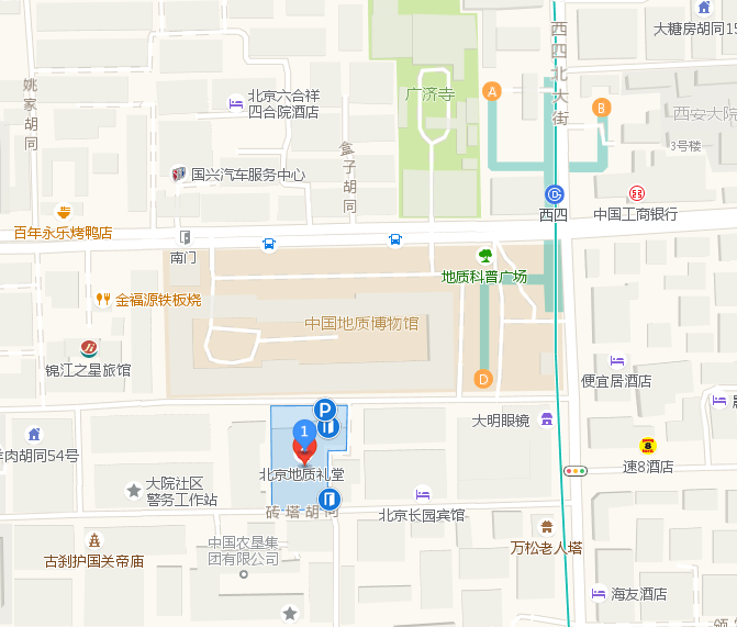 北京地質禮堂(北京市西城區羊肉胡同30號)。