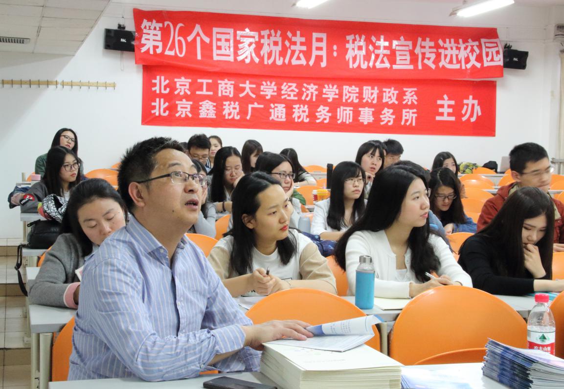 4月26日,做為北京市注冊稅務師協會“稅法宣傳進校園”系列宣講活動之一,北京鑫稅廣通稅務師事務所宣講團隊走進北京工商大學進行稅法宣傳。