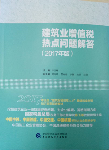 北京天揚君合稅務師事務所2017年初出版的《建筑業增值稅會計核算與管理操作指南(2017年版)》、《PPP項目會計與稅收實務(2017年版)》和《建筑業增值稅熱點問題解答(2017年版)》三本書面市兩月內便加印兩次,受到企業財稅乃至相關專業人士的青睞,更是受到中國施工企業管理協會、中國注冊稅務師協會傾力推薦,并被作為為2017年全國“建筑財稅領軍人才”暨建筑業財稅知識競賽指定教材。