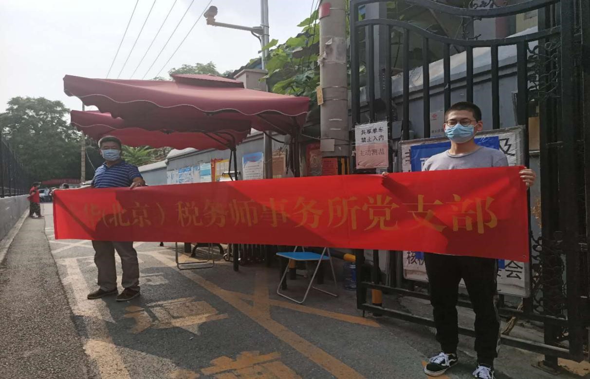 2020年 6月新冠疫情再次在首都北京爆發(fā),大華稅務師事務所黨支部接到社區(qū)防疫工作人員告急的通知,第一時間組織黨員和入黨積極分子報名參加社區(qū)一線的防疫工作,除在家隔離的人員外都報名參加了此次志愿活動,極大的緩解了廣內(nèi)街道核桃園社區(qū)防疫的工作壓力。