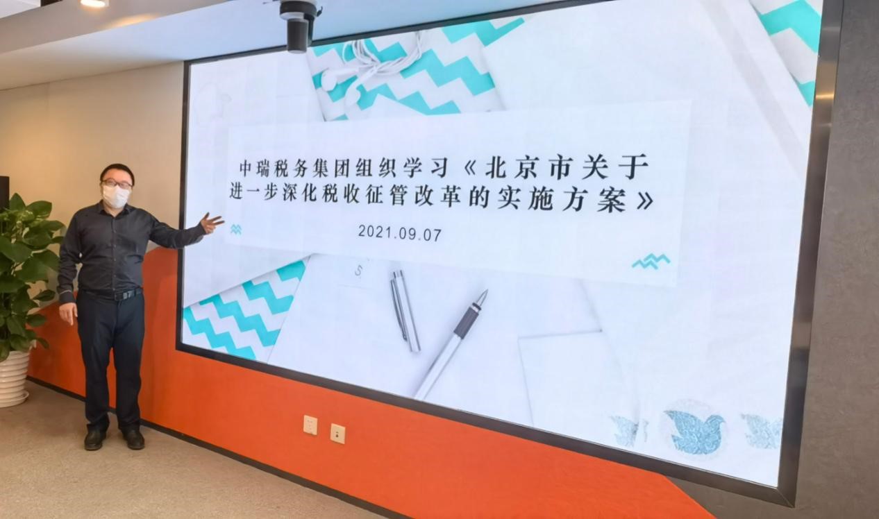 9月7日,中瑞稅務師事務所黨支部組織在京員工學習北京市人民政府網站公布的《北京市關于進一步深化稅收征管改革的實施方案》。中瑞稅務師事務所黨支部書記主持會議。