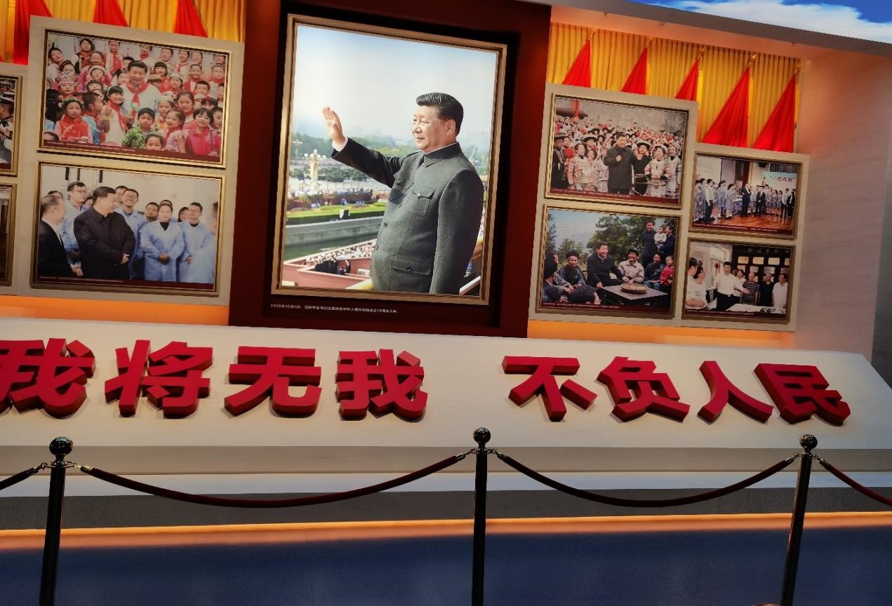 進入展館內,整個展覽以“不忘初心、牢記使命”為主線,精心設計了“建立中國共產黨奪取新民主主義革命偉大勝利”“成立中華人民共和國進行社會主義革命和建設”“實行改革開放開創和發展中國特色社會主義”“推進中國特色社會主義進入新時代全面建成小康社會開啟全面建設社會主義現代化國家新征程”4個部分。通過圖片、珍貴文物和文字,再現了中國共產黨人的精神家園,回顧了黨苦難輝煌、波瀾壯闊的奮斗歷程。