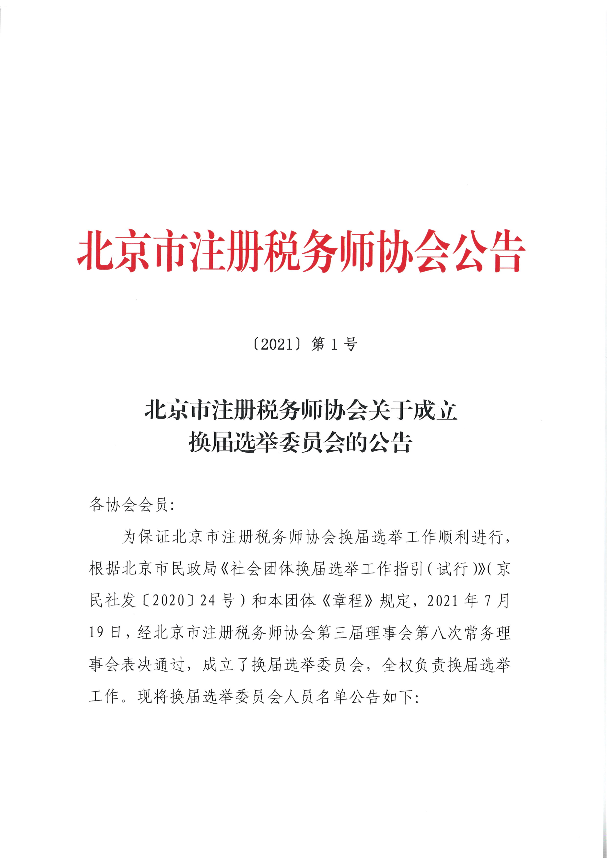 北京市注冊稅務師協會關于成立換屆選舉委員會的公告